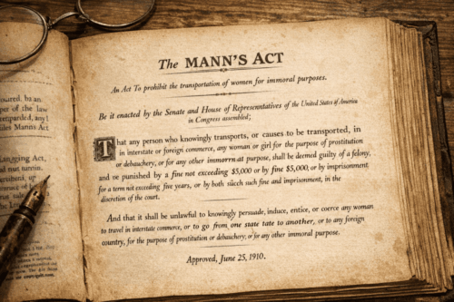 1910年に成立したMann法は、「不道徳な目的で人を州をまたいで移動させることを禁止する」法律です。